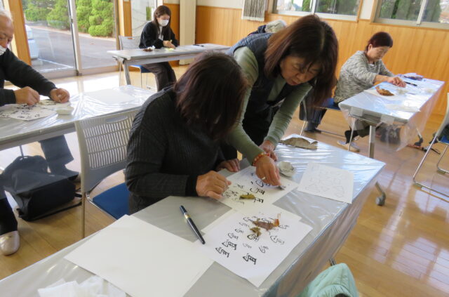 女性講座~ものづくり編~ 筆文字アート教室(全2回)を行いました♪ 今回の教室は、落ち葉を使って年賀状を書こう♫ 使う落ち...