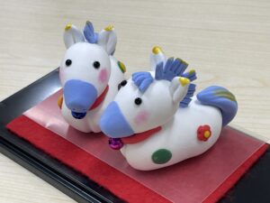 粘土をこねて丸めたり、切ったり、くっつけたりと色々な工程を経て、かわいい午が出来上がりました。