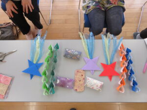 第1回の折り紙教室は、ちょっとしたお土産を入れるのに最適な簡単プレゼントBOXと七夕飾りを作りました。