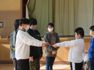 その後、舞い方をご教授いただき、6年生から3年生へと引き継ぎを行いました。
