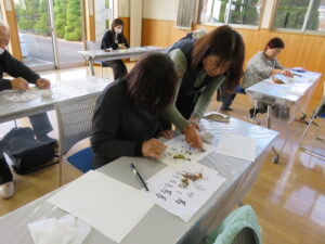 今回の教室は、落ち葉を使って年賀状を書こう♫