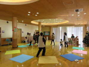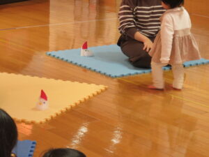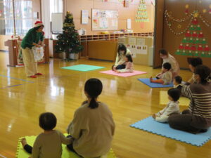 南方子育てサポートセンターを会場に、講師にみゅうじっくさろんの小野寺 範子先生をお呼びし、親子リトミック教室を行いました。クリスマスソングに合わせてベルを鳴らしたり、紙コップでサンタさんを作成するなど、一足早い楽しいクリスマスを過ごしました。